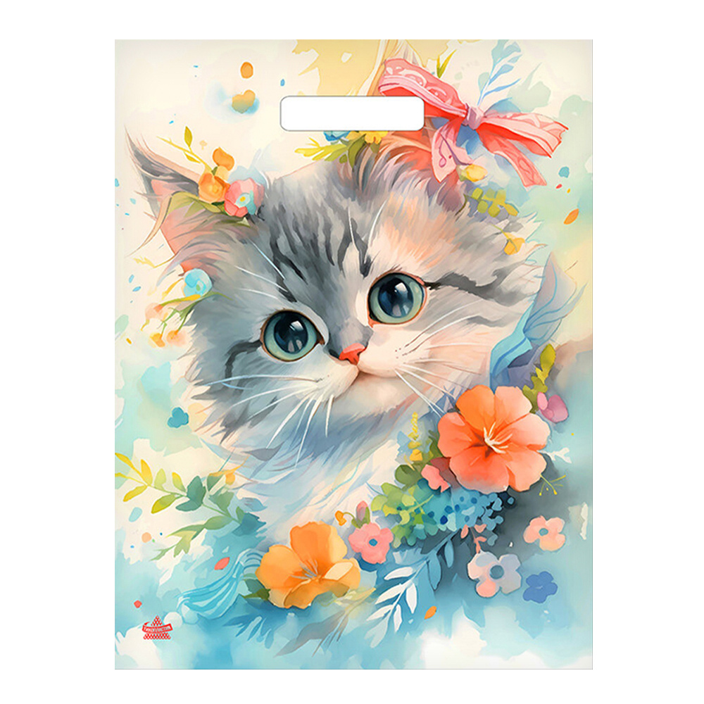 Пакет полиэтиленовый Милый котенок, вырубная ручка 34*45 см