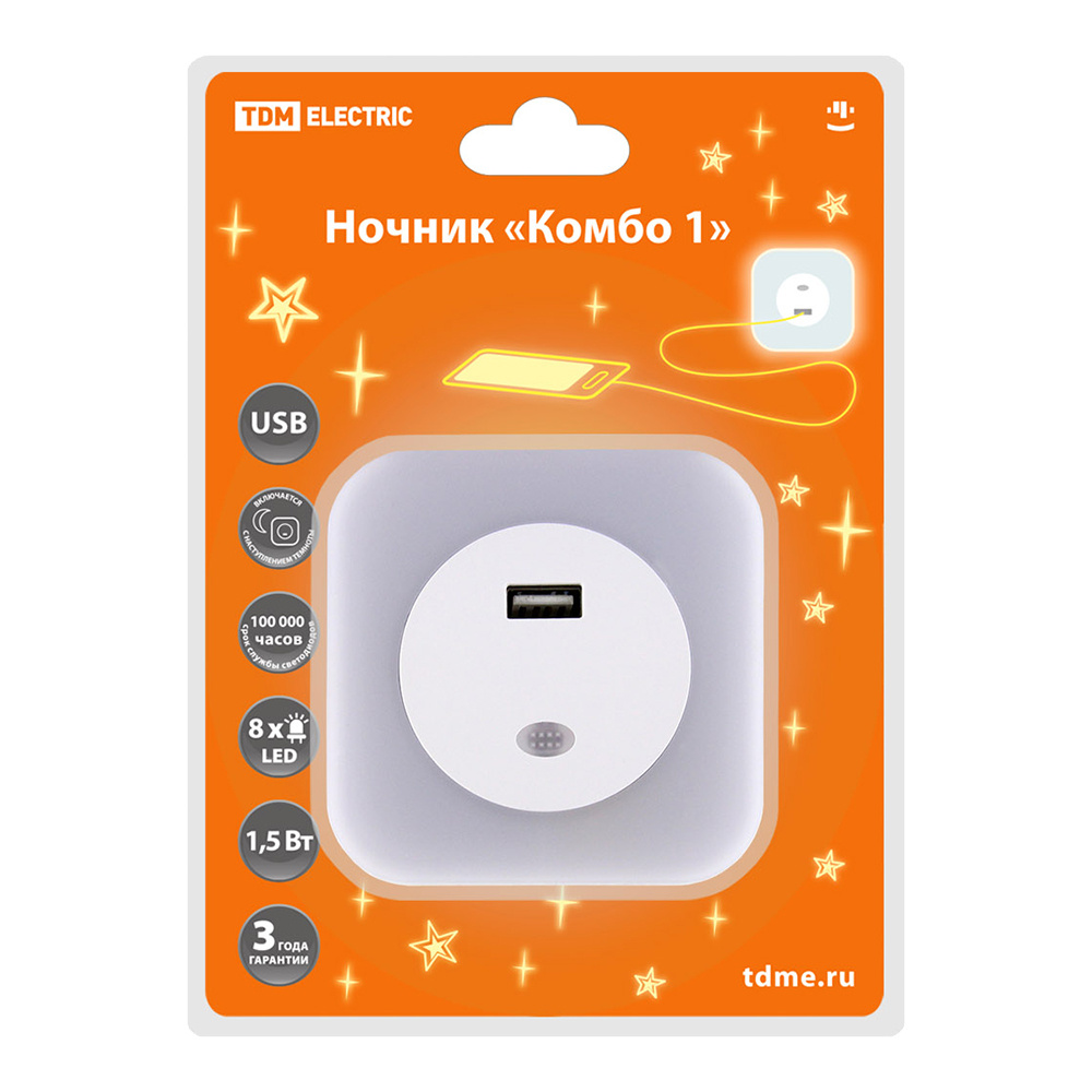 Ночник TDM Комбо1 , 8LED,66 лм/Вт, USB-разъем 220Вт 1 шт
