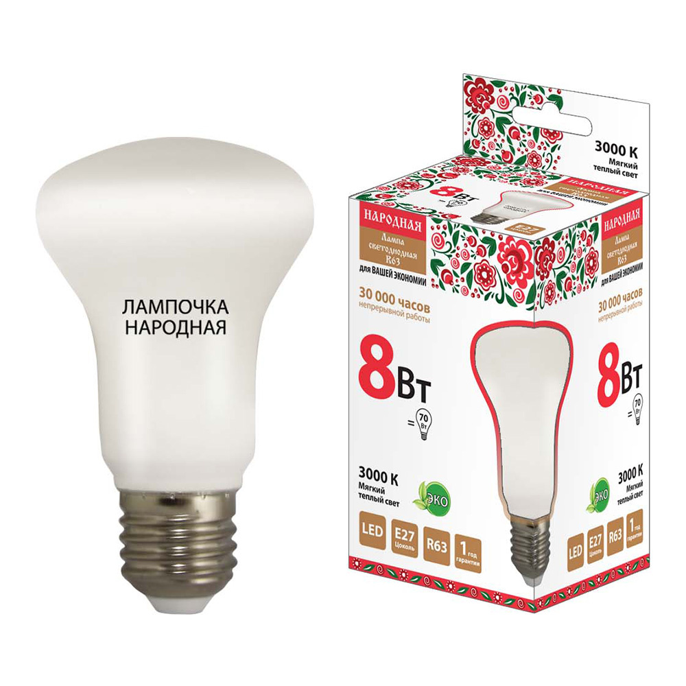 Лампа светодиодная TDM Народная зеркальная R63-8Вт-230В-3000К–E27