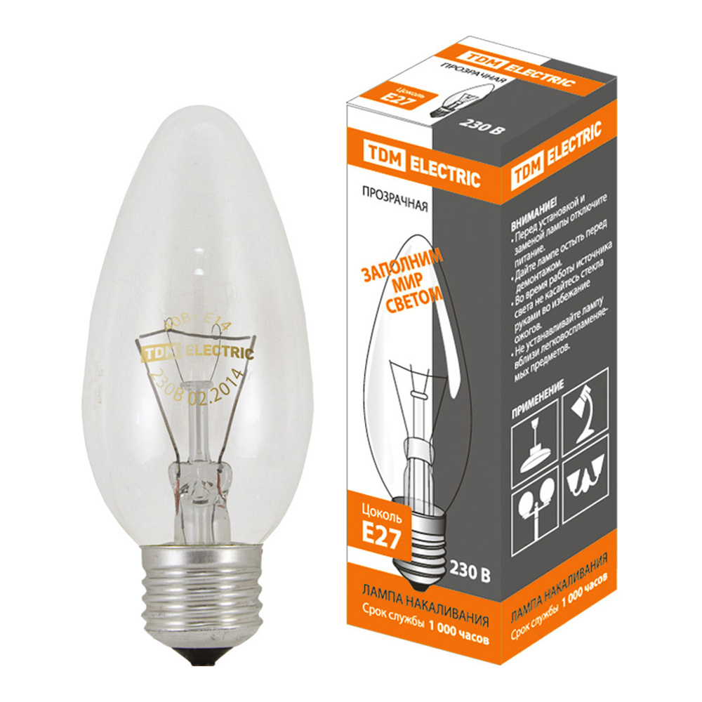 Лампа накаливания TDM 40w Е27 свеча прозрачная