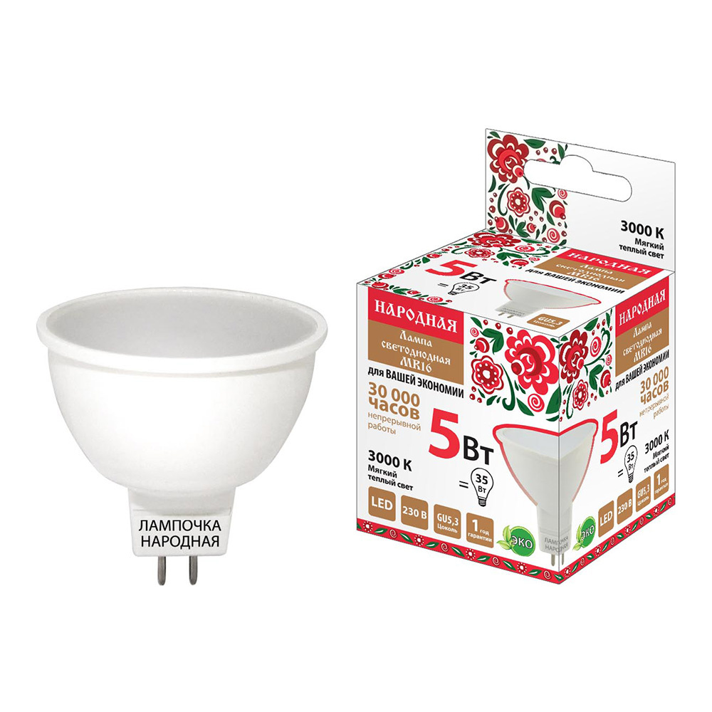 Лампа светодиодная TDM Народная 5Вт-230В-3000К–GU5.3