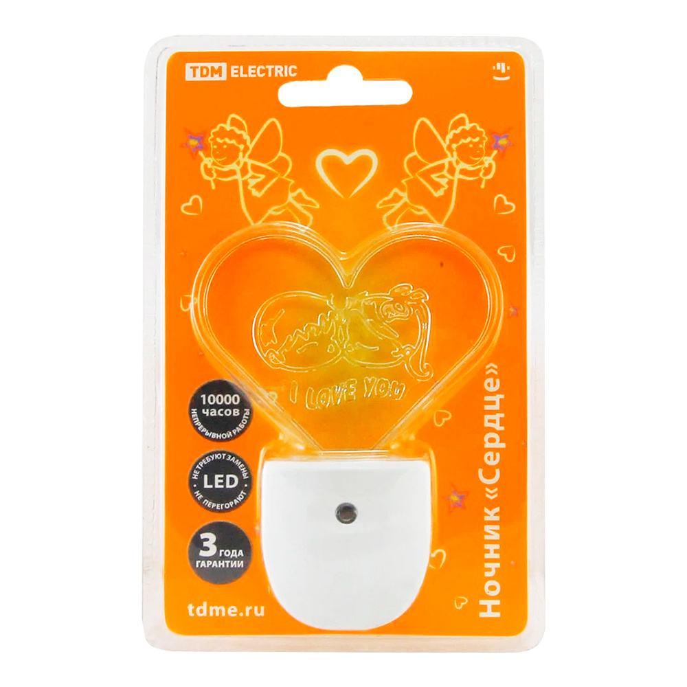 Ночник TDM "Сердце" с выключателем, 0,3 Вт, 220В