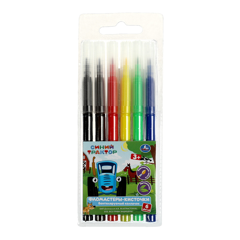 Фломастеры-кисточки Умка FB6-73771-STR Синий трактор, 6 цветов