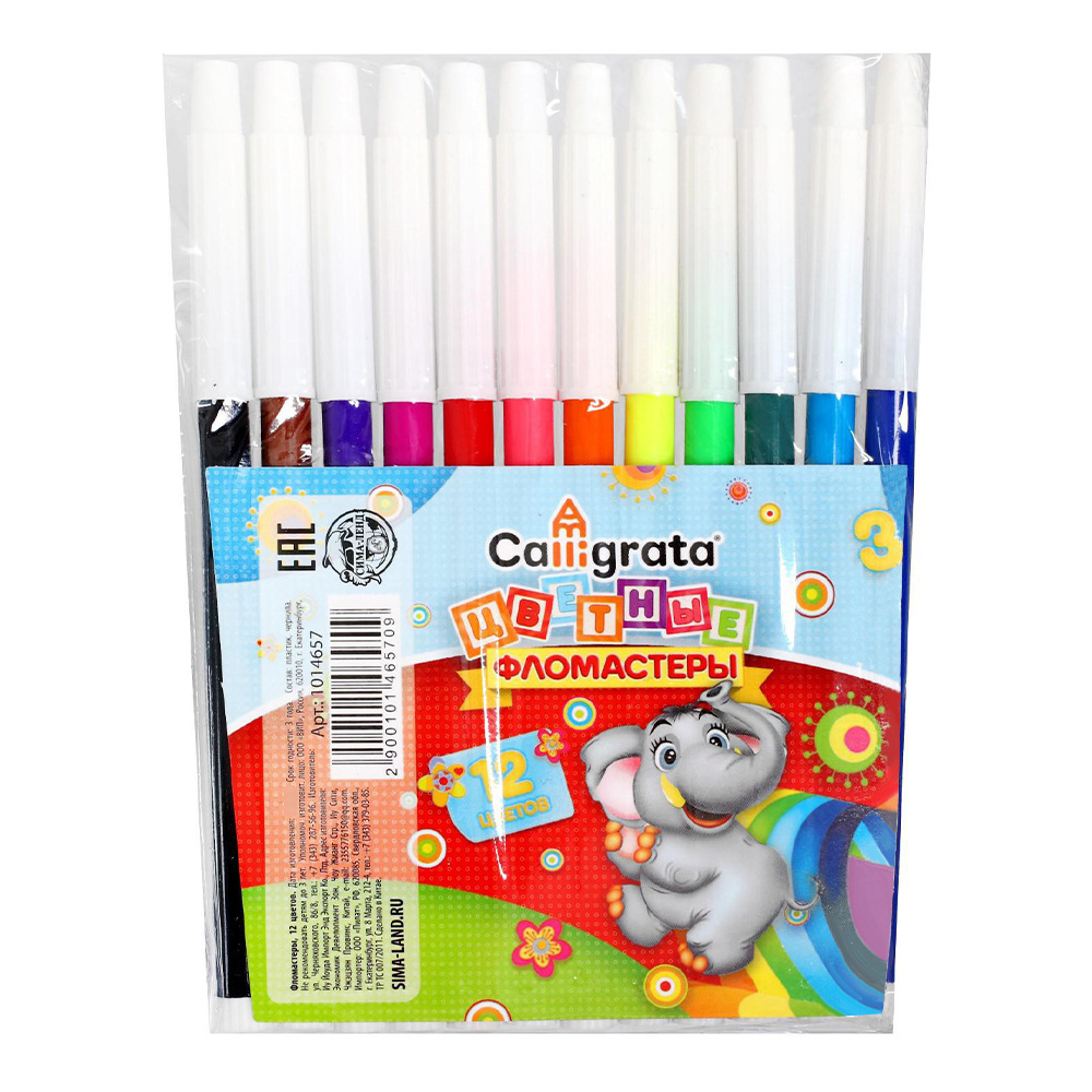 Фломастеры Calligrata 1014657 невентилируемый колпачок, 12 цветов