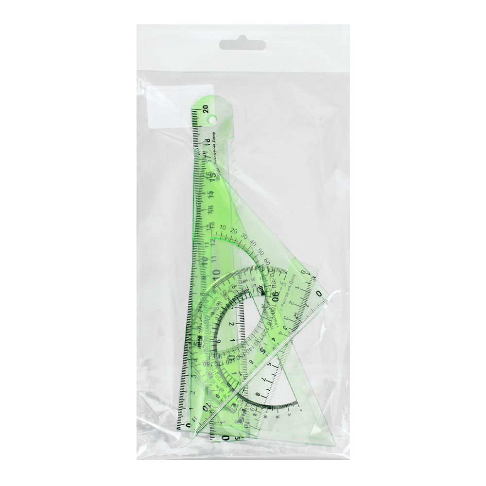Набор чертежный Calligrata 5598630 линейка 20 см, 2 треугольника, транспортир, пластик, в ассортименте, прозрачный