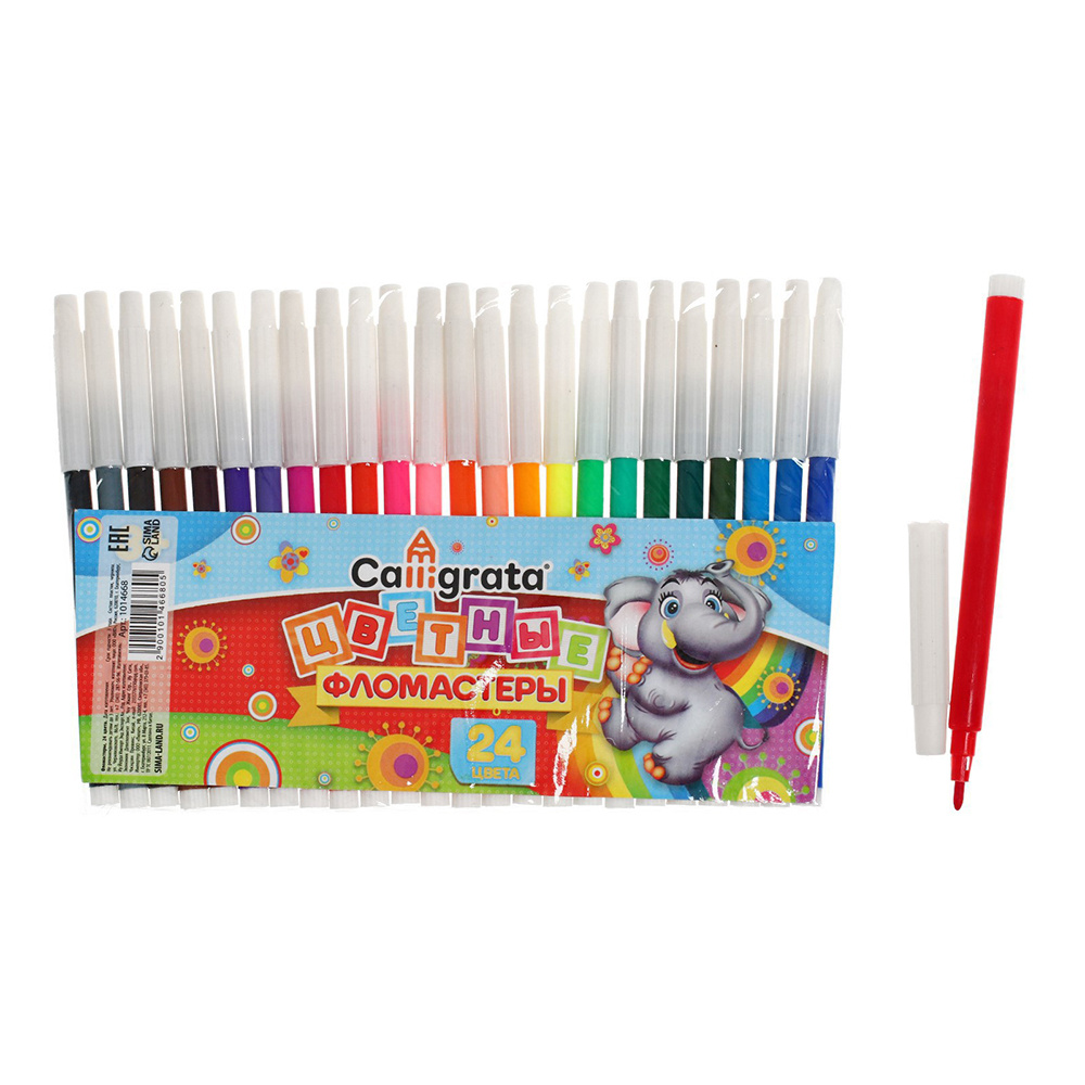 Фломастеры Calligrata 1014668 круглые, цветные, невентилируемый колпачок, 24 цвета