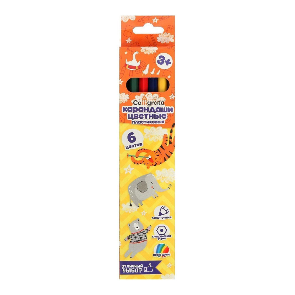 Карандаши цветные Calligrata 5303320 заточенные, шестигранные, пластиковые, 6 цветов, 6 шт