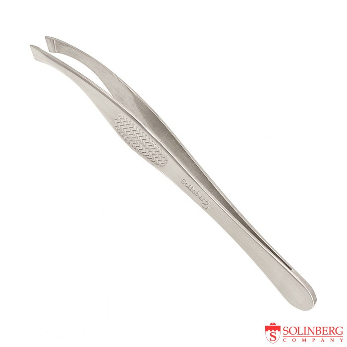 Пинцет для бровей Solinberg 251-G171 матовый, наклонное окончание с четкими гранями 9 см