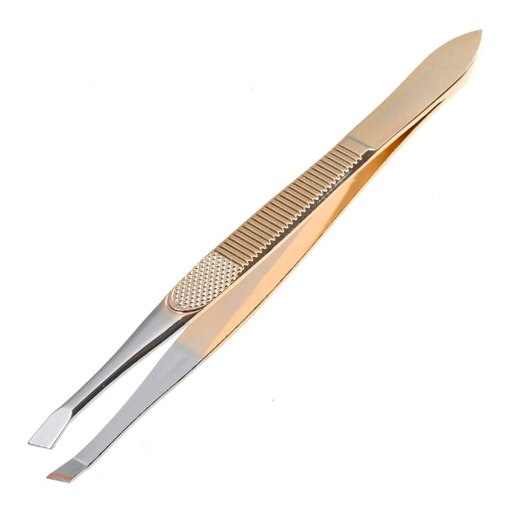 Пинцет для бровей Solinberg 251-047 прямое окончание с четкими гранями, золото/серебро