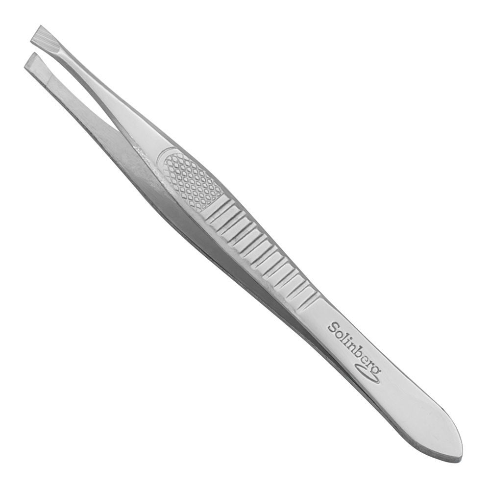 Пинцет для бровей Solinberg 251-F171B прямое окончание с четкими гранями, серебристый