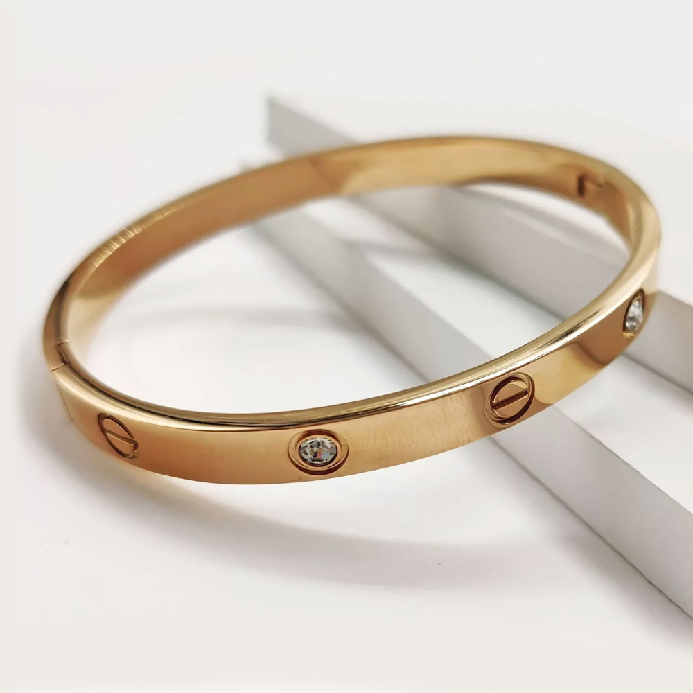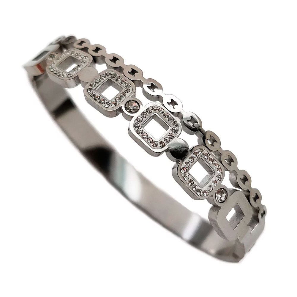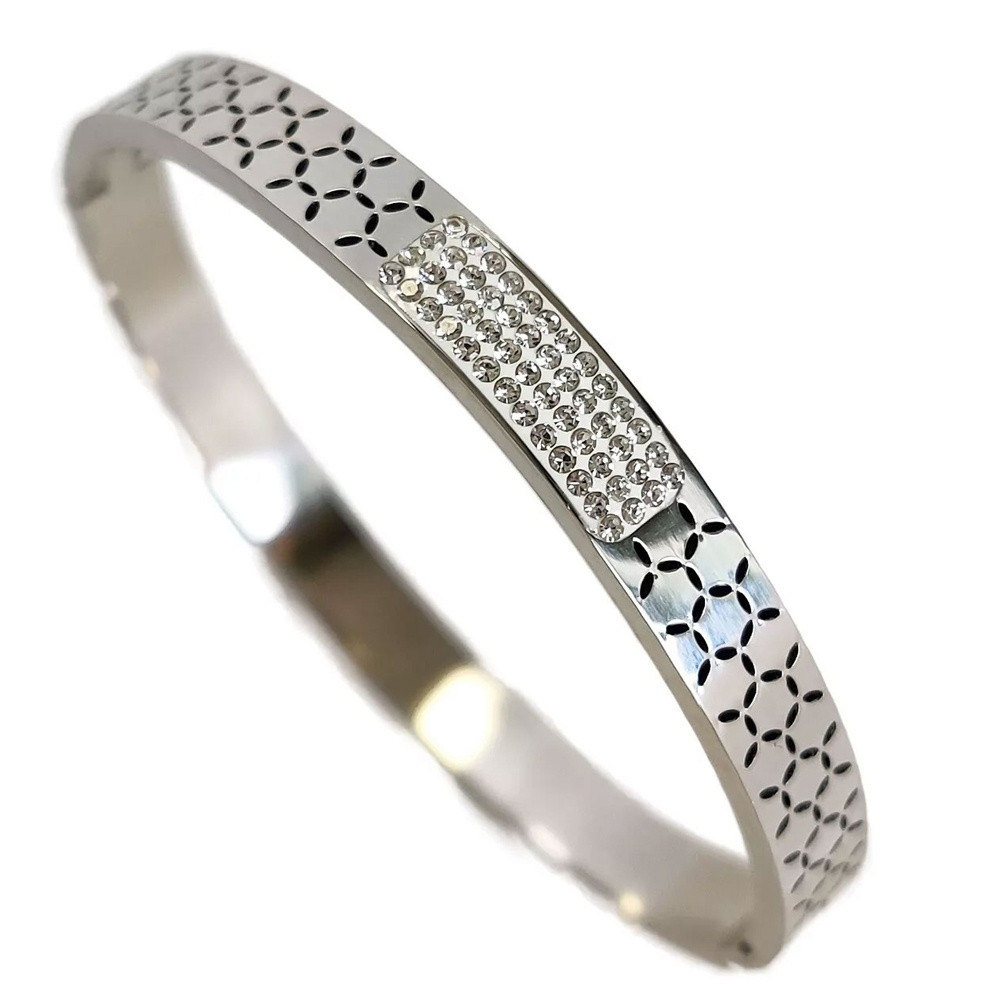 Бижутерия Браслет стальной, вставка цирконы, диаметр 6 см