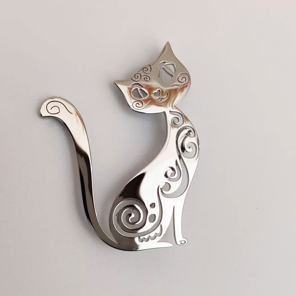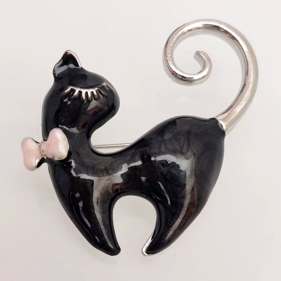Бижутерия Брошь, кошка, цвет: серебряный, ювелирный сплав