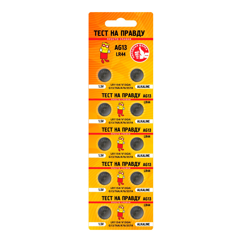Батарейка Тест на правду AG13 LR44 BL10 алкалиновая, 1 шт