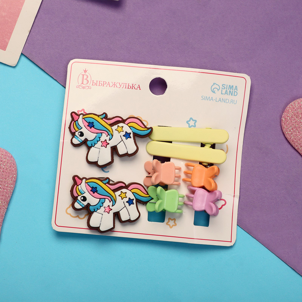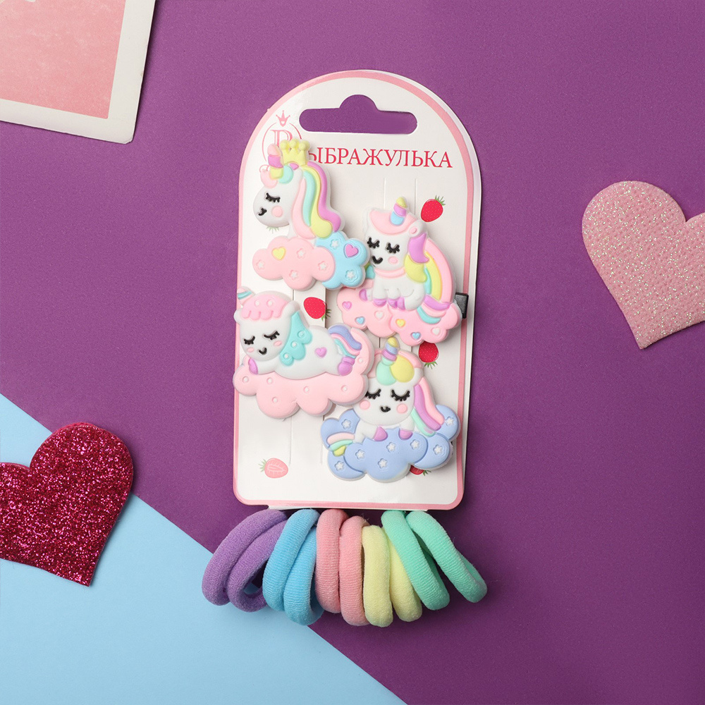 Набор для волос 10068618 Крошечка (2резинки+2зажима+4крабика) единорожка, в ассортименте