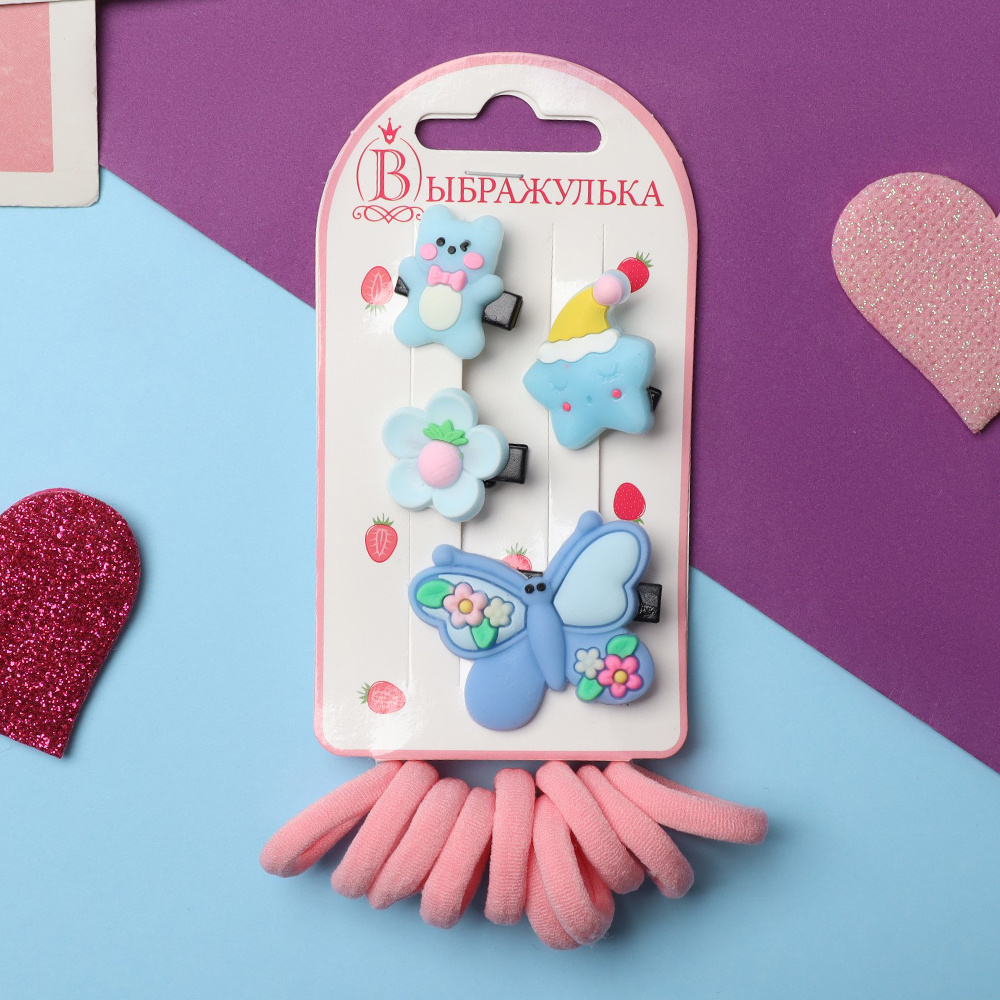 Набор для волос 10068636 Выбражулька ( 10 резинок + 4 зажима), в ассортименте