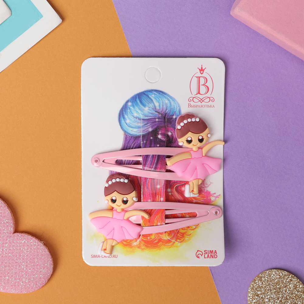 Зажим для волос Выбражулька 7908692 Абель, балерина, розовый, 2 шт 5 см