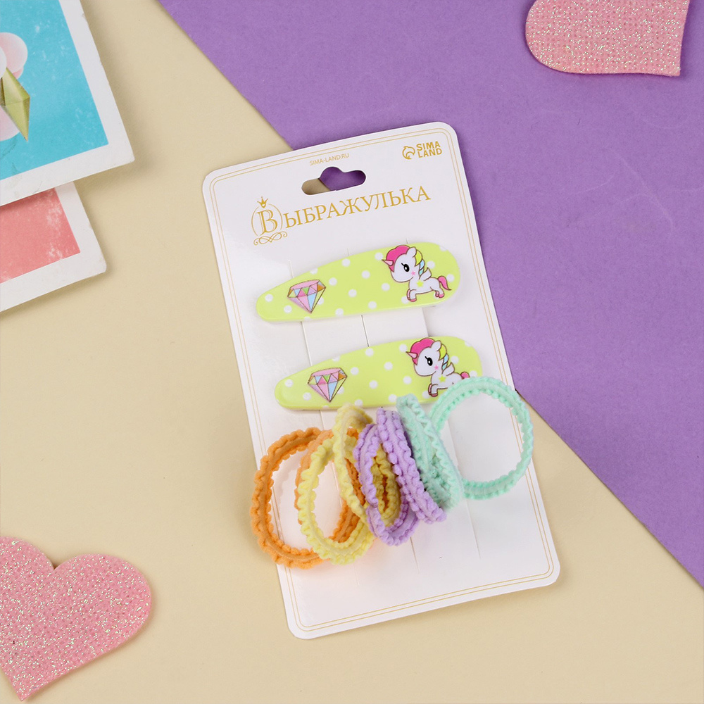 Набор для волос 10072641 Лучик (2 невидимки 5 см+8 резинок 3 см) единорожка, в ассортименте