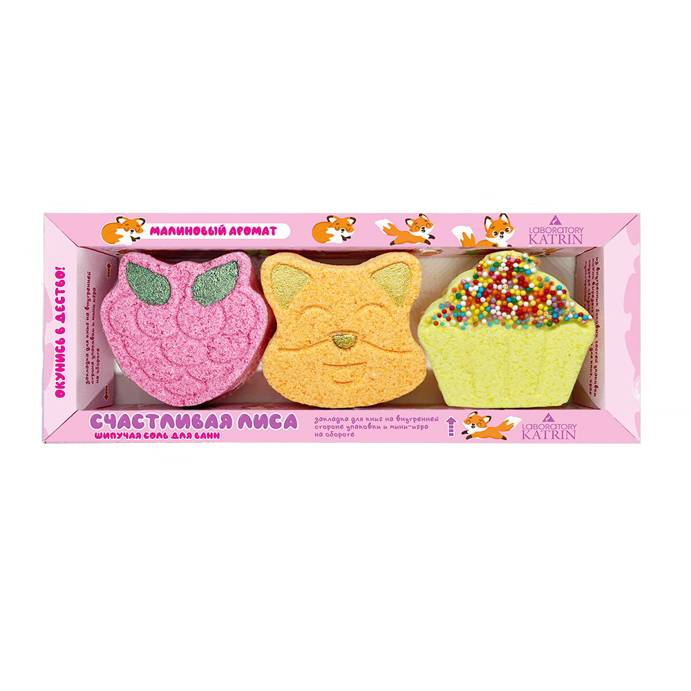 Соль для ванн Лаборатория Катрин 18063 Happiki Счастливая лиса, шипучая, набор 3шт., 270 г