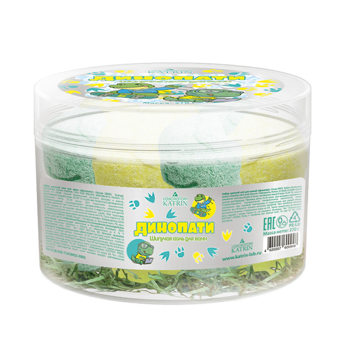 Соль для ванн Лаборатория Катрин 18066 Happiki Динопати, шипучая, набор, 270 г