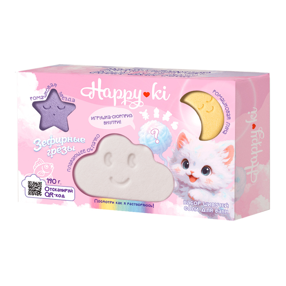 Соль для ванн Лаборатория Катрин 18063 Happyki, Зефирные грезы, шипучая, набор 3 шт, 190 г