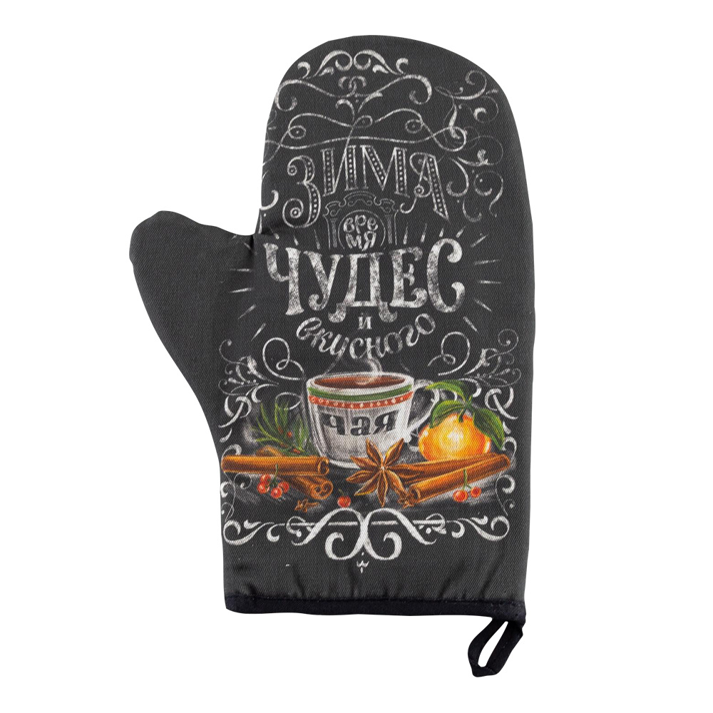 Прихватка-варежка Зима время чудес, хлопок 20*28 см, черный