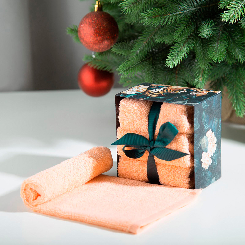 Набор махровых полотенец Этель 7328939 Новый год: Tiger, 30*30 см, бежевый, 3 шт