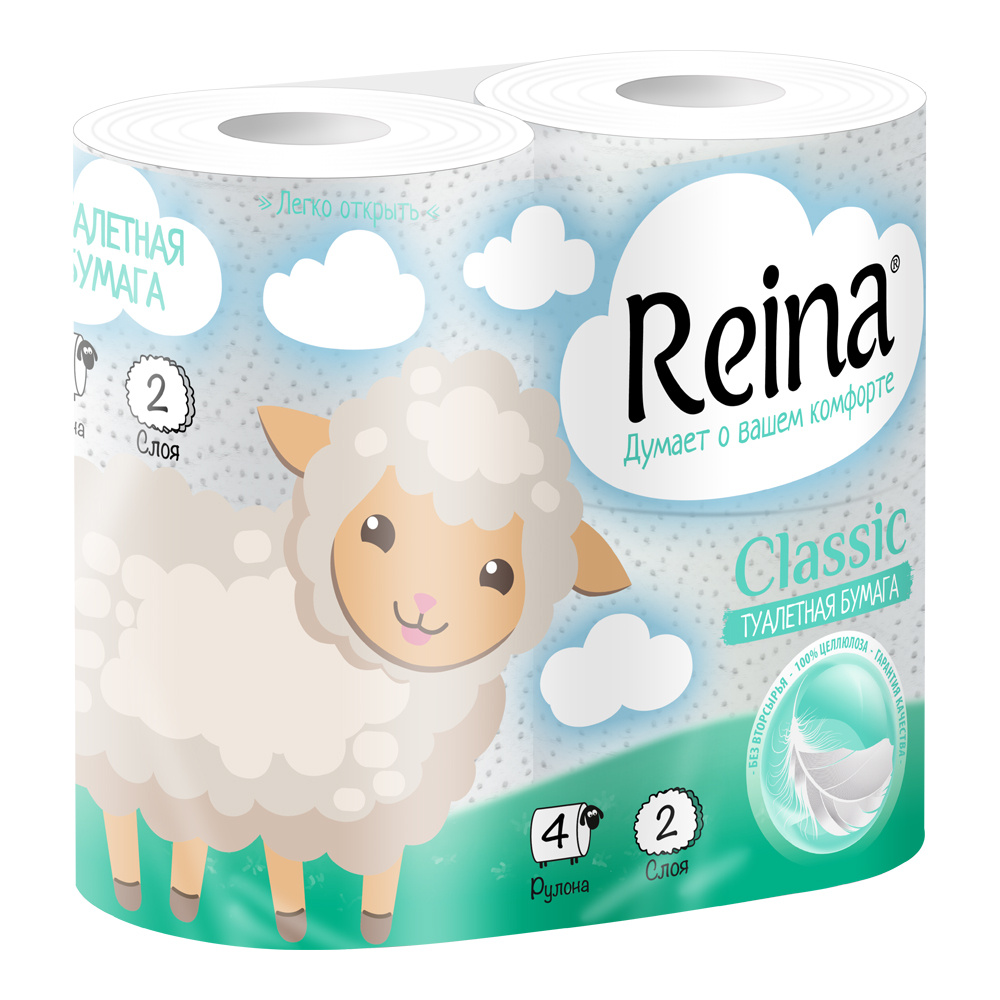 Бумага туалетная Reina двухслойная, Classic, 4 шт