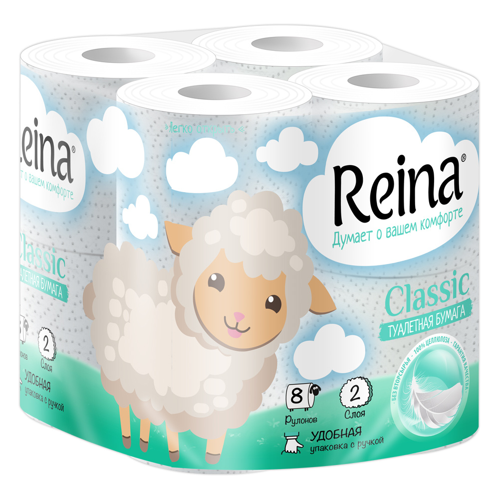 Бумага туалетная Reina двухслойная, Classic, 8 шт