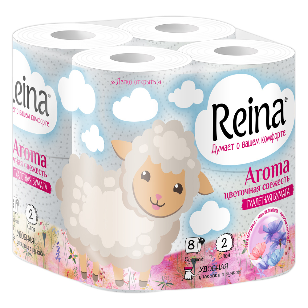 Бумага туалетная Reina Aroma двухслойная, Цветочная свежесть, 8 шт