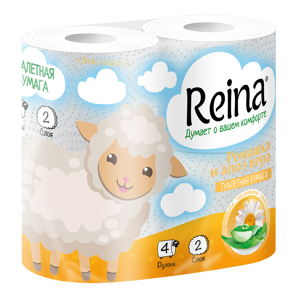 Бумага туалетная Reina Aroma Ромашка и алоэ вера, двухслойная, 4 шт