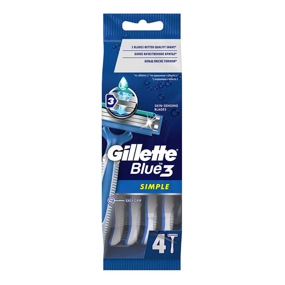 Станок для бритья Gillette Blue Simple одноразовый 3 лезвия, мужской, 4 шт