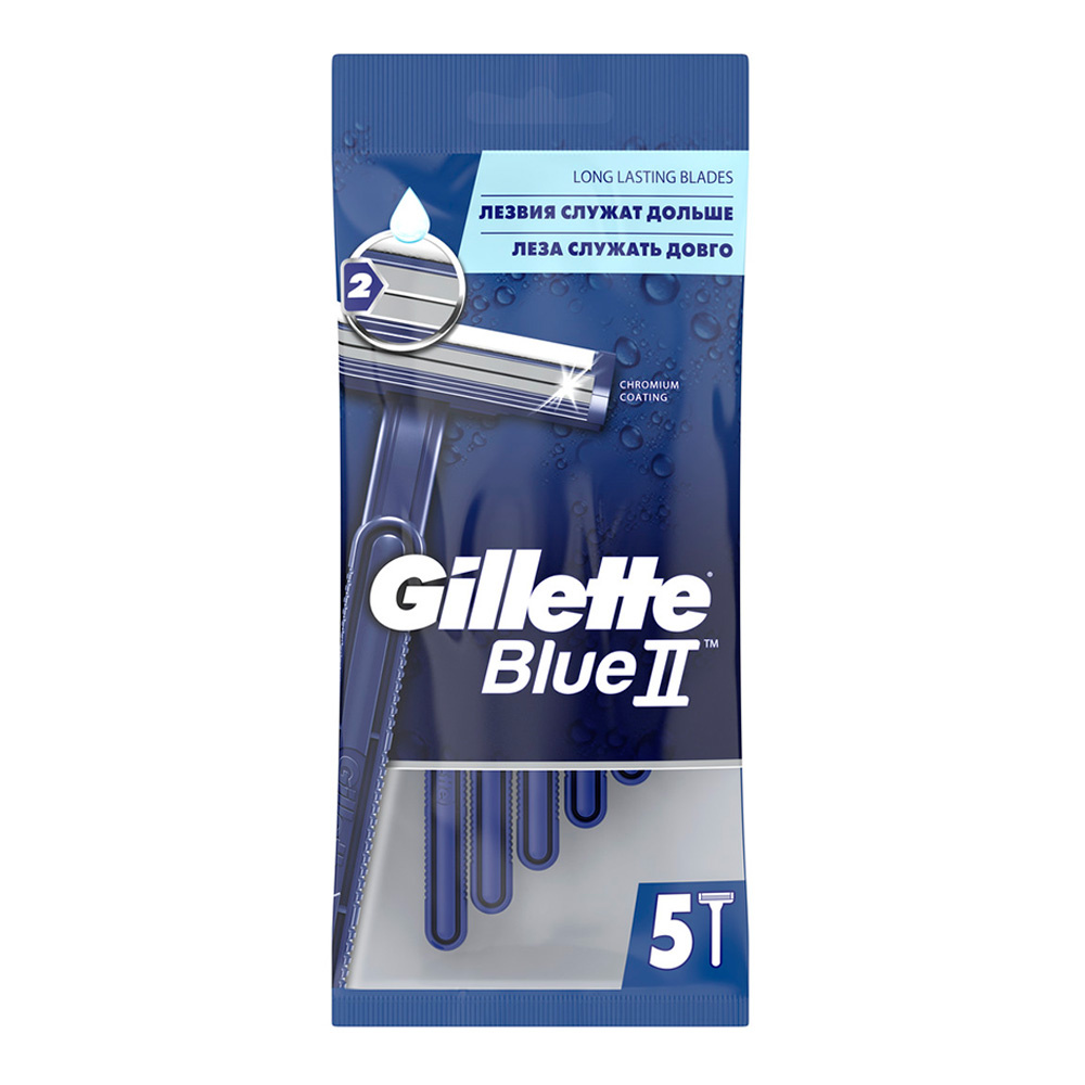 Станок для бритья Gillette Blue II одноразовый 2 лезвия, мужской, 5 шт