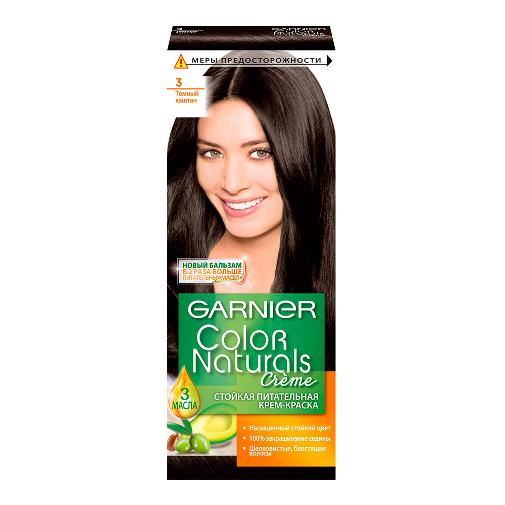 Краска для волос Garnier Color Naturals тон 3, Темный каштан