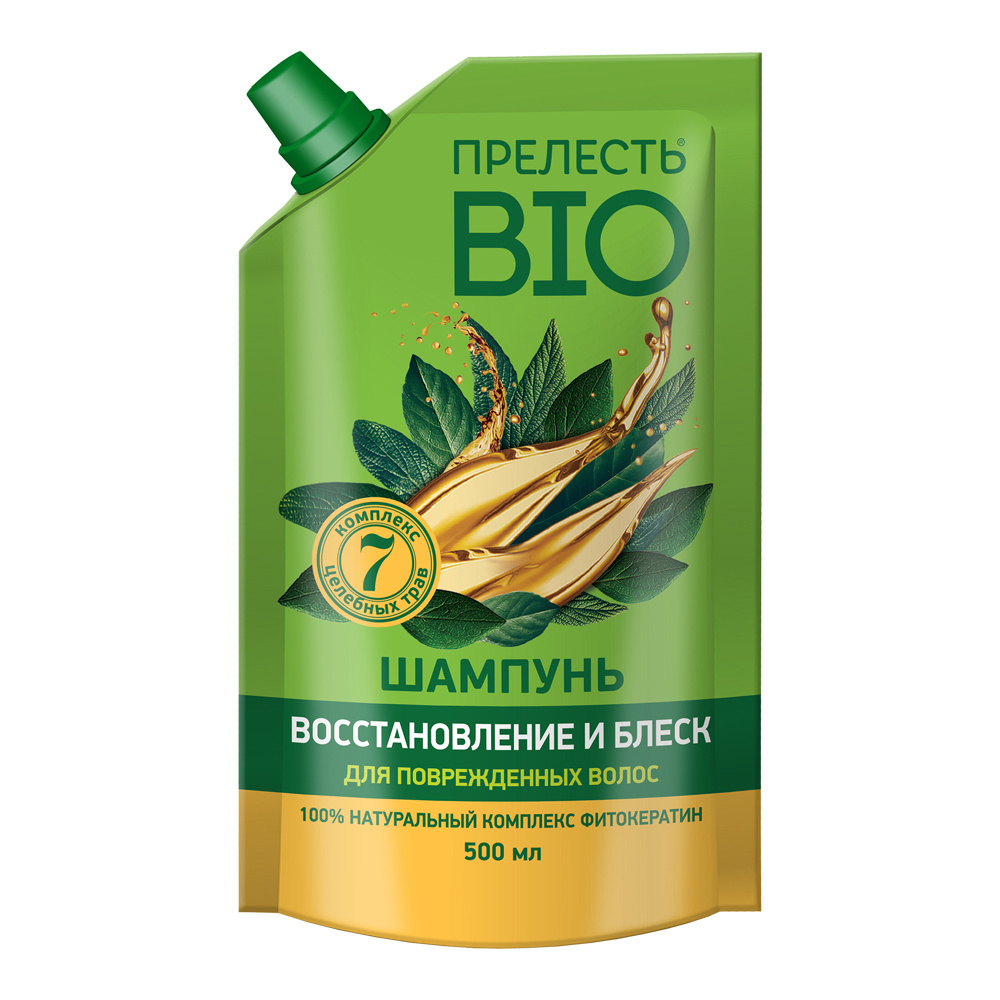 Шампунь Прелесть Био Восстановление и блеск, Фитокератин, дой-пак, 500 мл