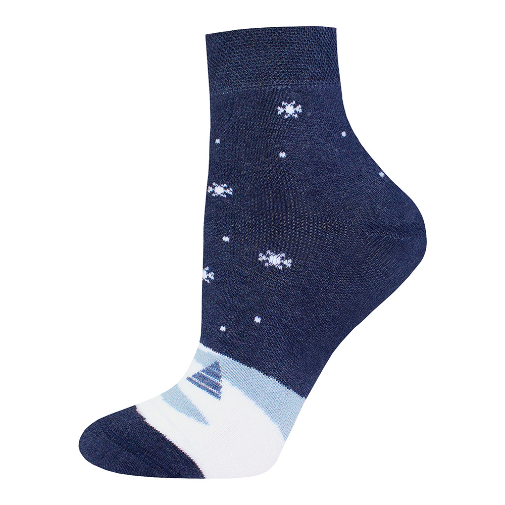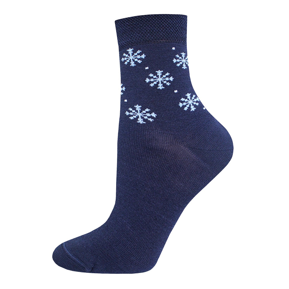 Носки женские Брест 19С1494 458 тонкая полушерсть,двойной борт,рисунк Снежинки, размер 25, темно-синий