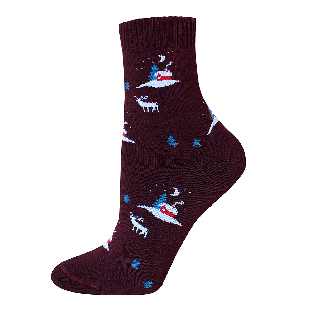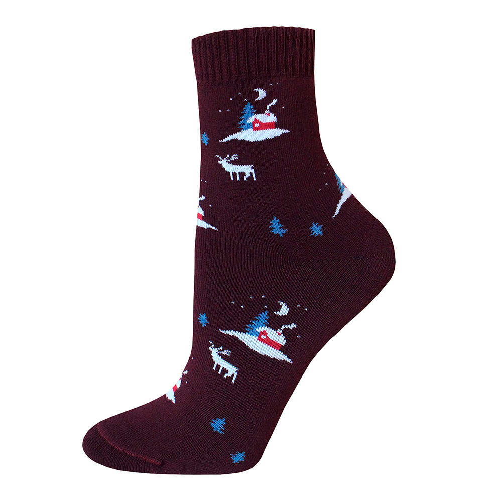 Носки женские зимние Брест 14С1407 514 укороченные, махровые с рисунком скандинавский, размер 25, темно-бордовый