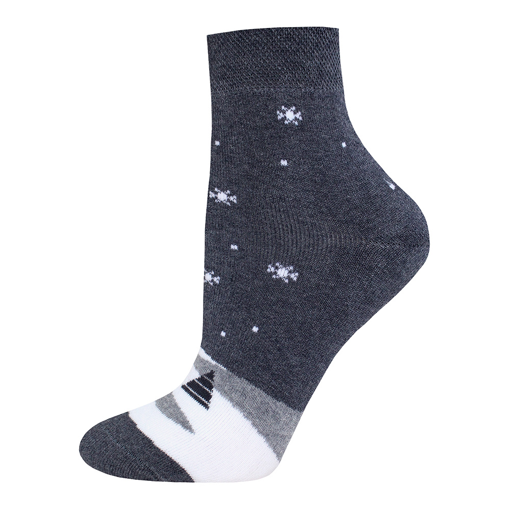Носки женские Брест 14С1407 438 укороченные, махровые с рисунком Елки, размер 23, темно-серый меланж