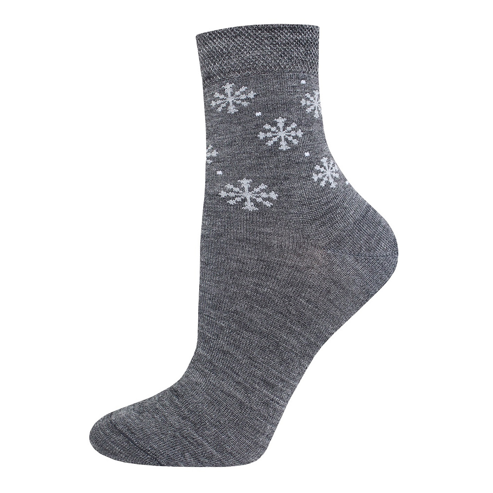 Носки женские Брест 19С1494 458 тонкая полушерсть,двойной борт,рисунк Снежинки, размер 25, темно-серый