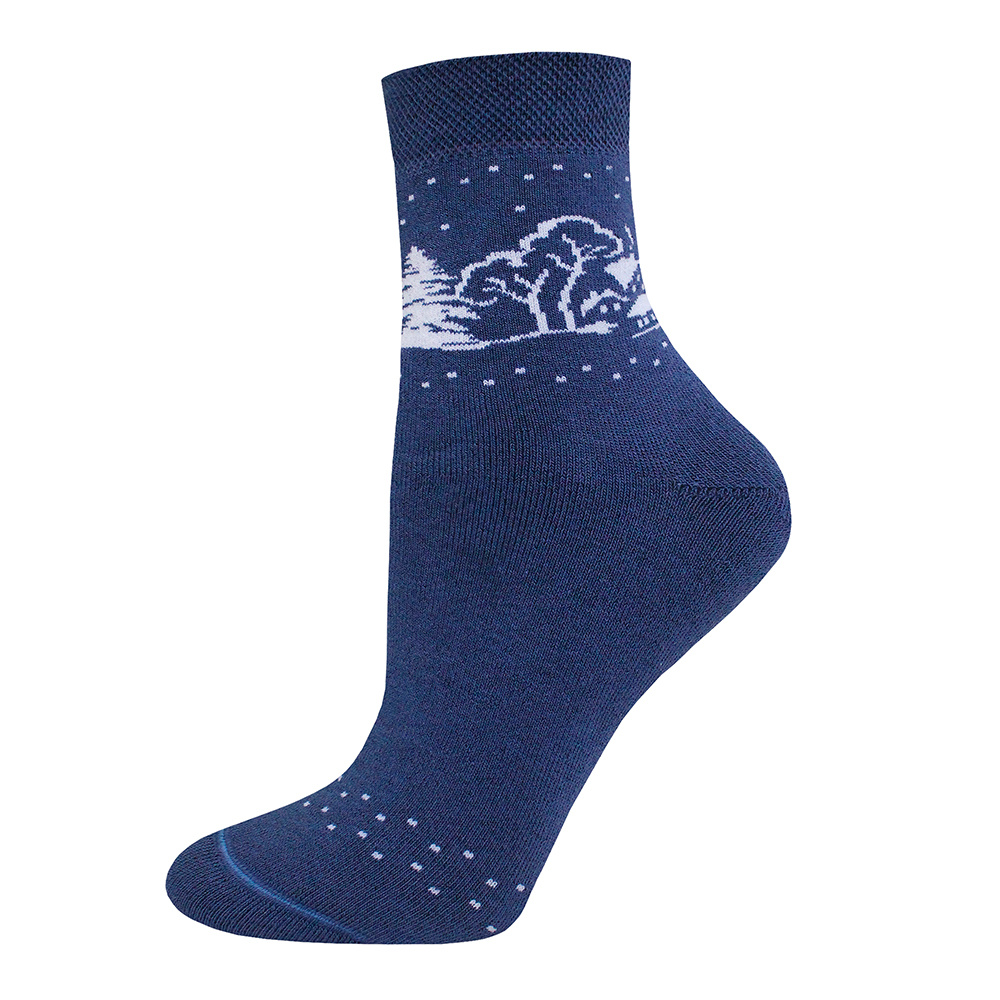 Носки женские Брест 15С1408 444 махровые, с рисунком Зимний лес, размер 23, темный джинс