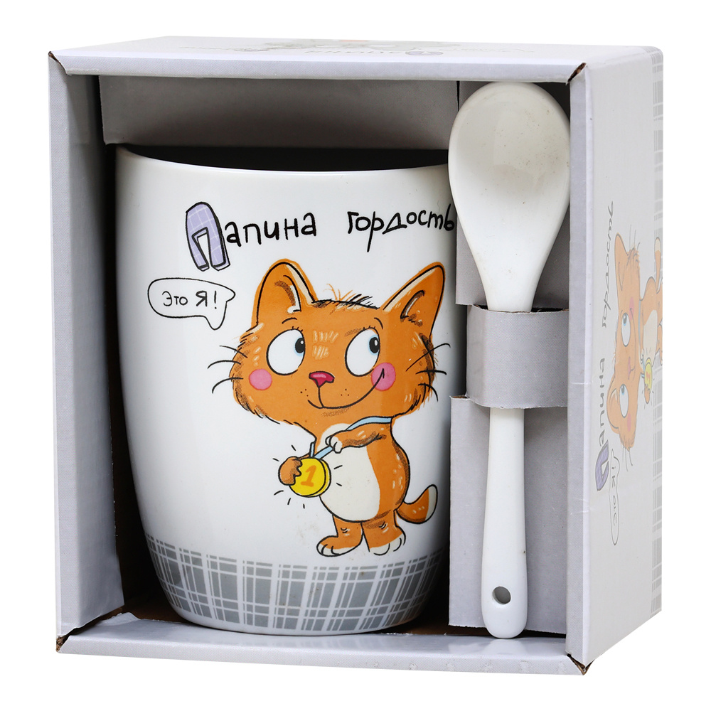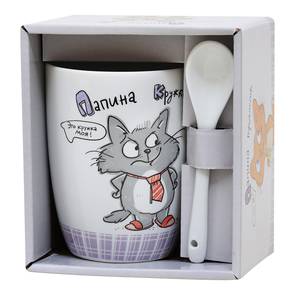 Кружка BRJD065-887 Папина с ложкой, в подарочной коробке, фарфор, 340 мл