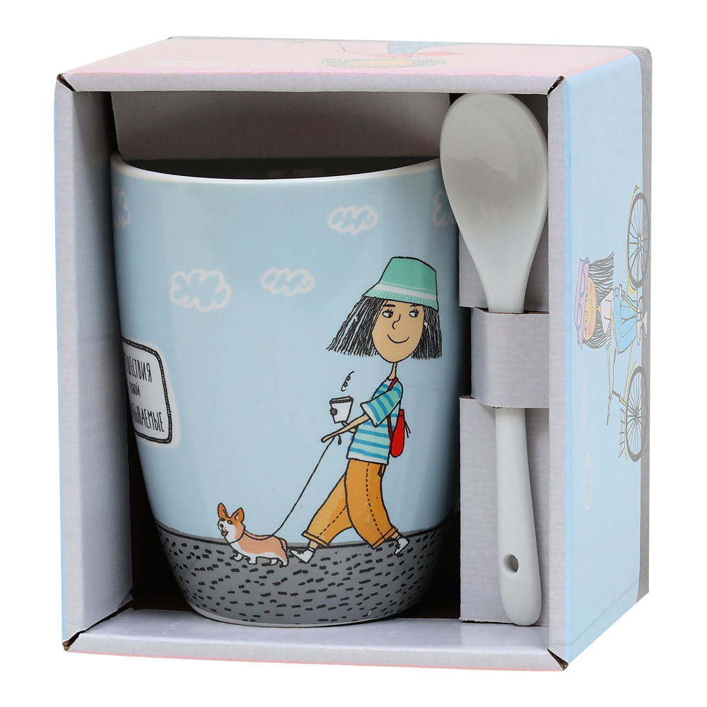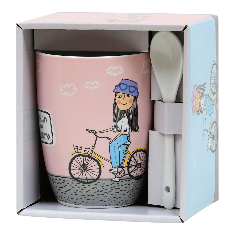 Кружка BRJD065-892 Умницы-красавицы с ложкой, в подарочной коробке, фарфор, 340 мл