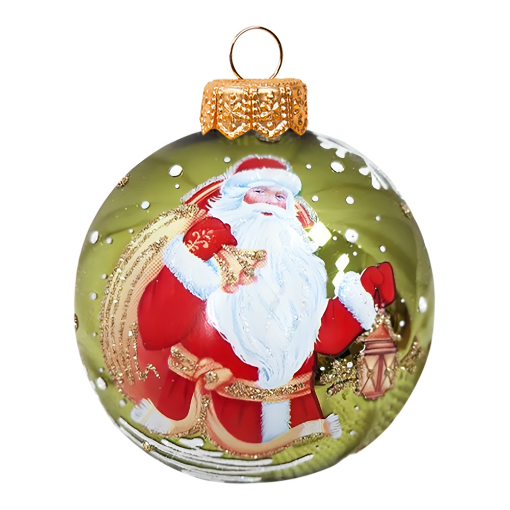 Шар в подарочной упаковке КУ-80-244030 Дед Мороз с фонариком, стеклянный, 80 мм, 1шт