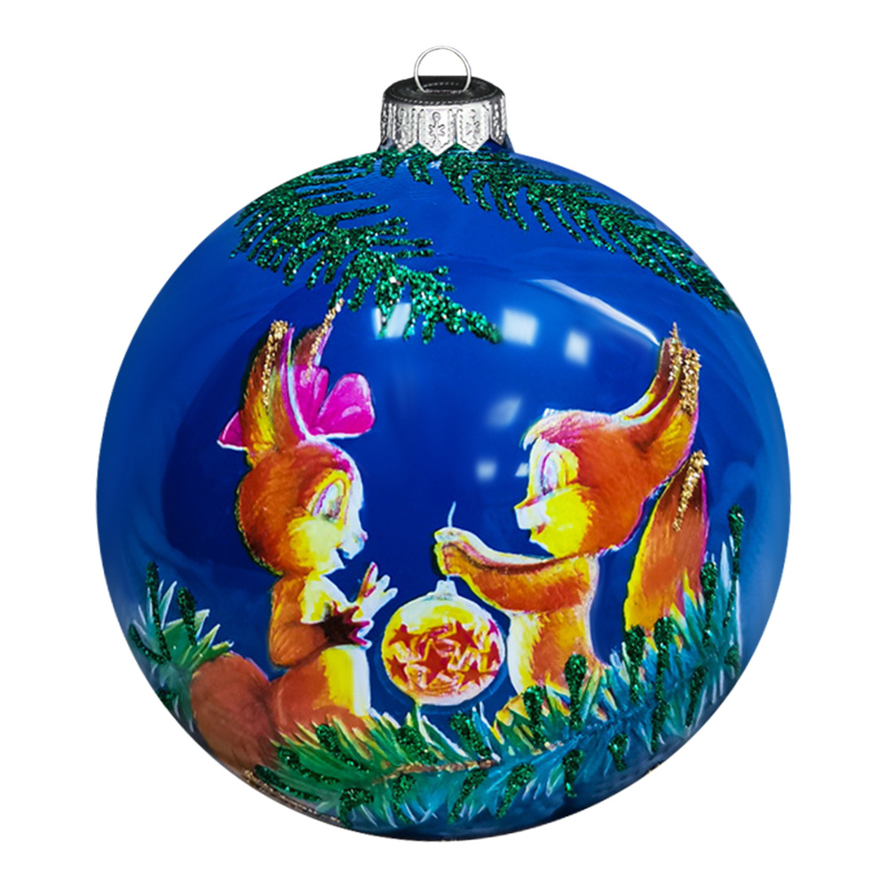 Шар в подарочной упаковке КУ-85-204528 Белочки-подружки, стеклянный, 85 мм, 1шт