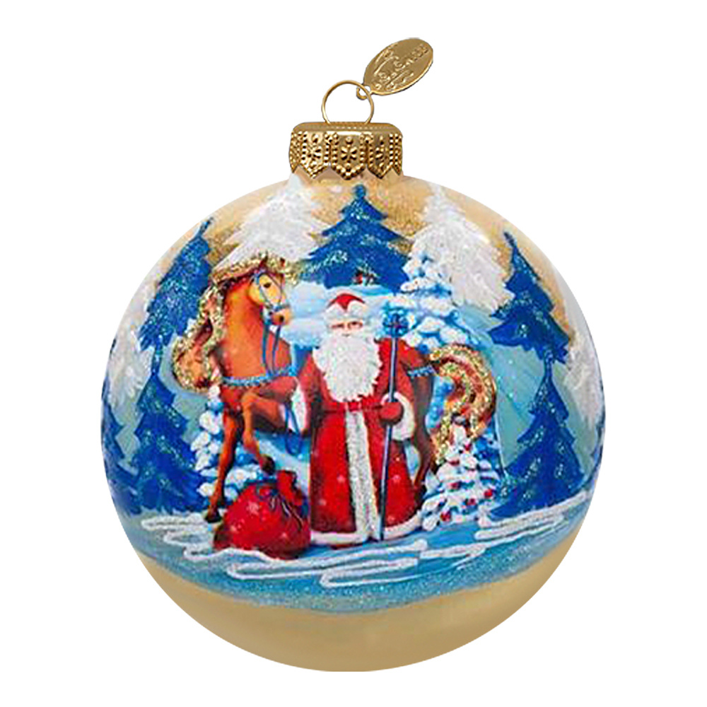 Шар в подарочной упаковке КУ-80-254024/3 Дед Мороз и лошадка, стеклянный, 80, 1шт