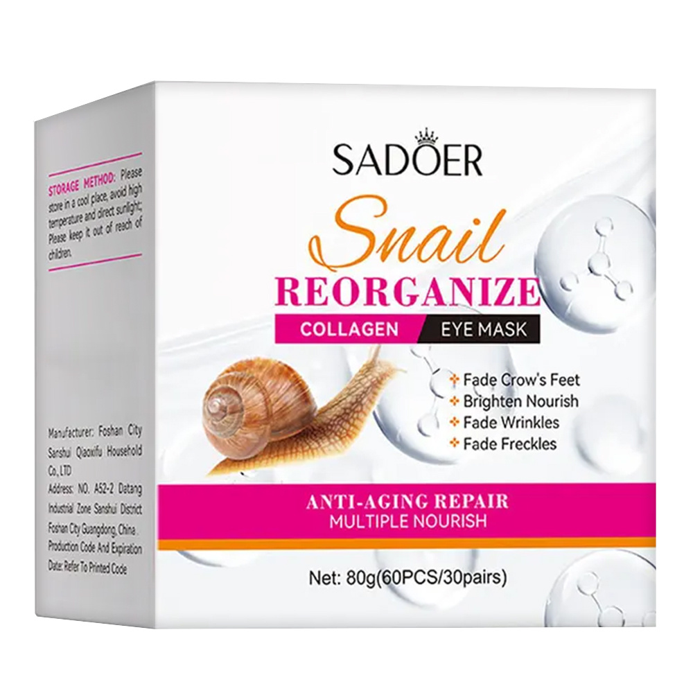 Патчи для глаз Sadoer гидрогелевые с муцином улитки и коллагеном, 60 шт