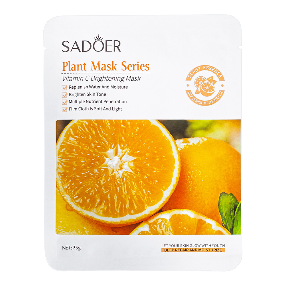 Маска для лица Sadoer тканевая, Осветление и увлажнение с витамином С и экстрактом цитруса, 25 г