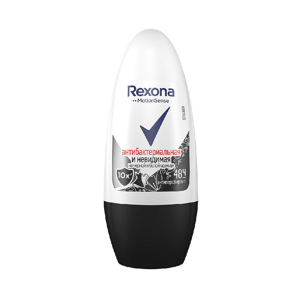 Дезодорант-антиперспирант женский Rexona Антибактериал и невидимый эффект на черном и белом, ролик, 50 мл