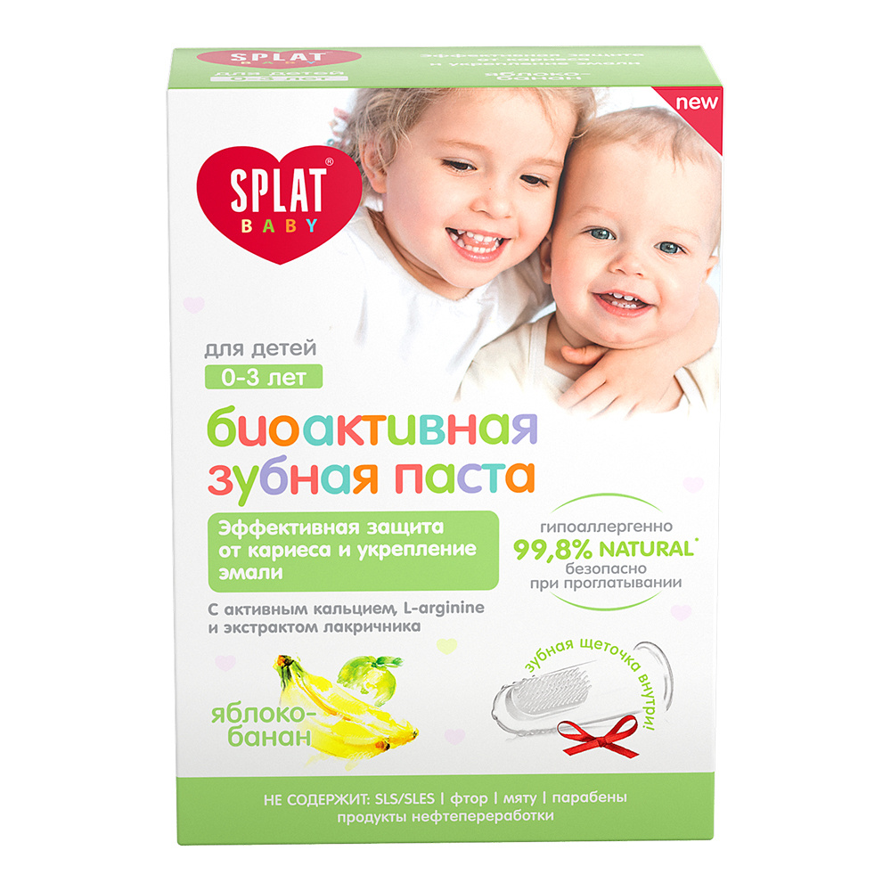 Зубная паста Splat детская, Биоактивная Яблоко и банан от 0-3 лет, 40 мл