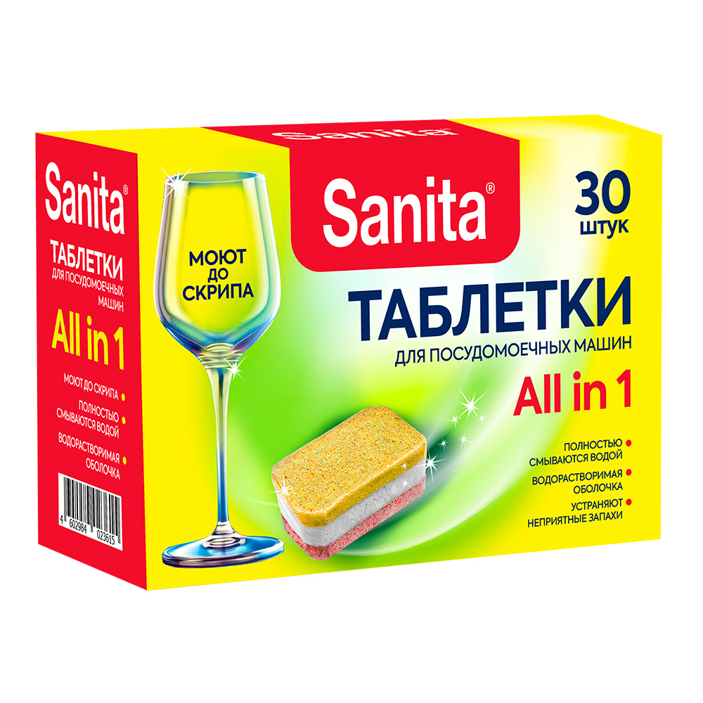 Таблетки для автоматических посудомоечных машин Sanita All in 1, 30 таблеток