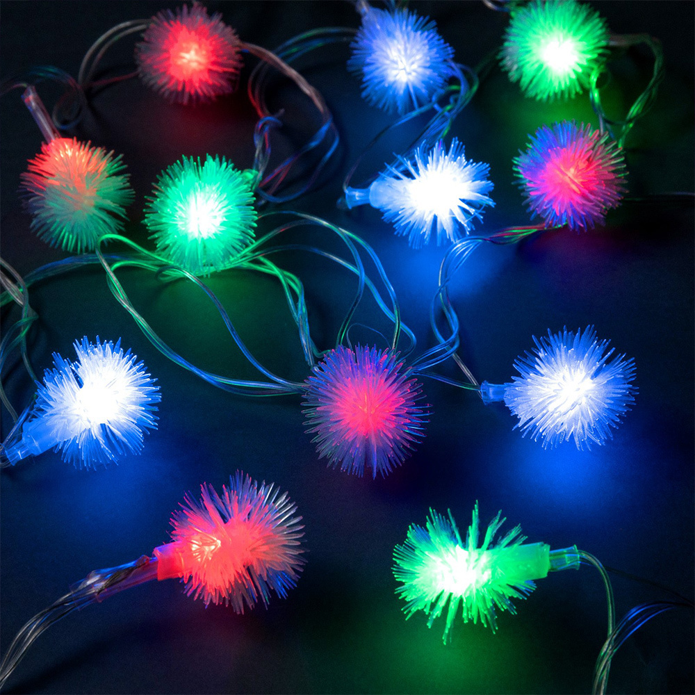 Новогодняя Гирлянда 541541 Ёжики, светодиодная, свечение мульти, мигание, нить прозрачная, 5 м, 20 лампочек
